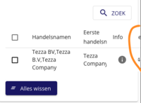 Nog een kleine bevinding voor de klanten pagina qua styling. Wanneer je hebt gezocht op een vestiging of niet-natuurlijk persoon valt een deel van de resultaattabel buiten het scherm: