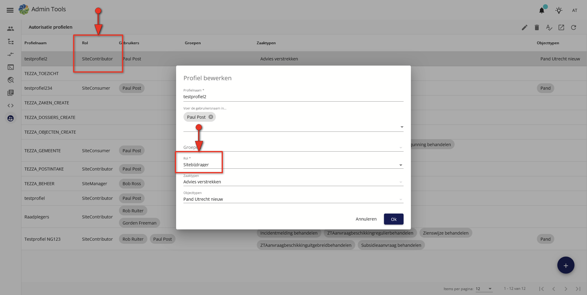 Project activity #28339: Nieuwe autorisatieprofielen maken voor Tezza
