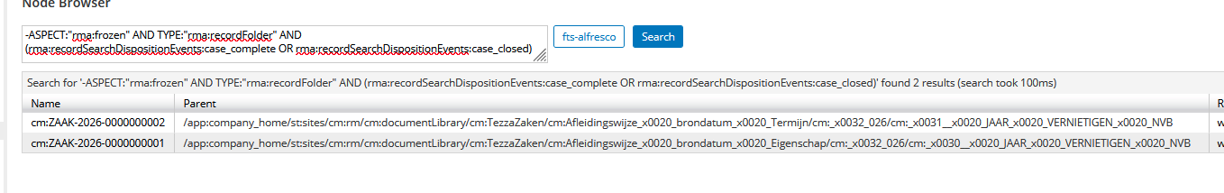 • nvb folders worden geïdentificeerd door aanwezigheid van property rma:recordSearchDispositionEvents. Dit wordt gebruikt: