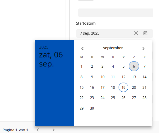 - In de picker, een andere datum selecteren, bij selectie gaat de picker dicht en de tekstuele datum in het veld is correct.
