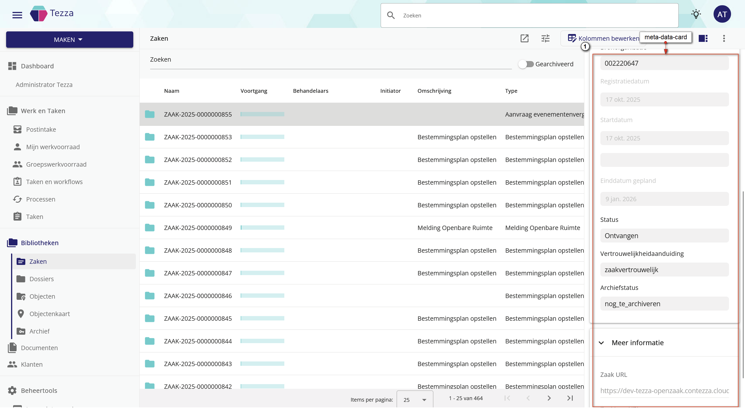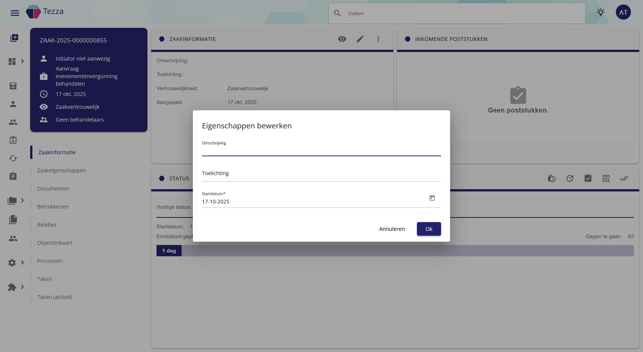 Op dit moment is het niet mogelijk om alle meta-data velden van een zaak te bewerken bijv.