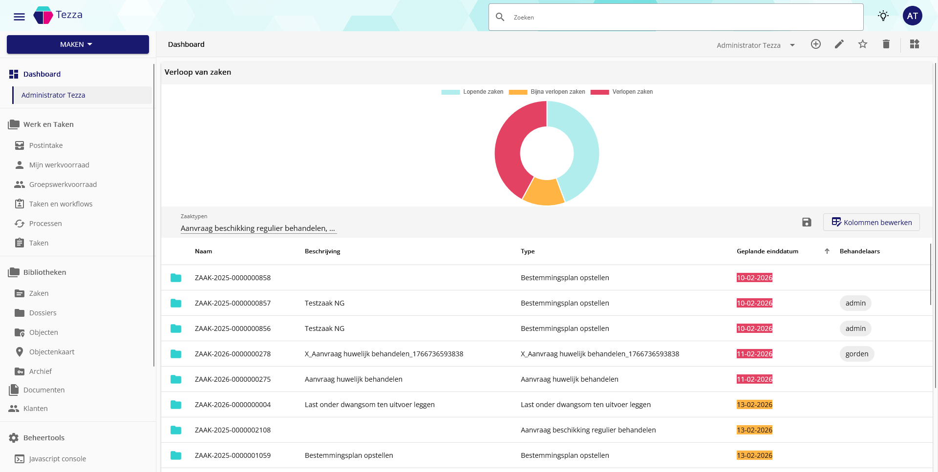 Als gebruiker wil ik dat de geplande einddatum oranje of rood wordt weergegeven, zodat ik direct kan zien of een zaak bijna afgehandeld moet worden of over de datum is.